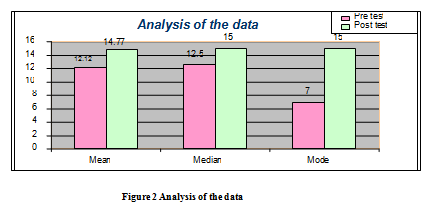 - The average score of the pretest is12.12 and in the post test 14.77.