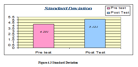 - There is a high standard deviation (5.121) in posttest score compared with low standard deviation (4.231) in pretest score.