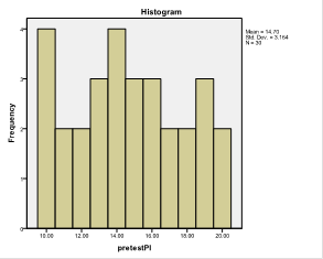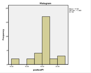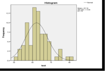 Figure1. Shows the histogram of the piloted PET test that lower limit was 56.22 and the upper limit was 68.1